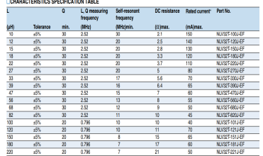 我們將NLV32T-221J貼片電感和GNL1210J221貼片電感做一下對(duì)比: