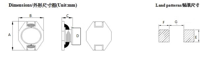 三、貼片功率電感GBS封裝尺寸(UNIT:mm)