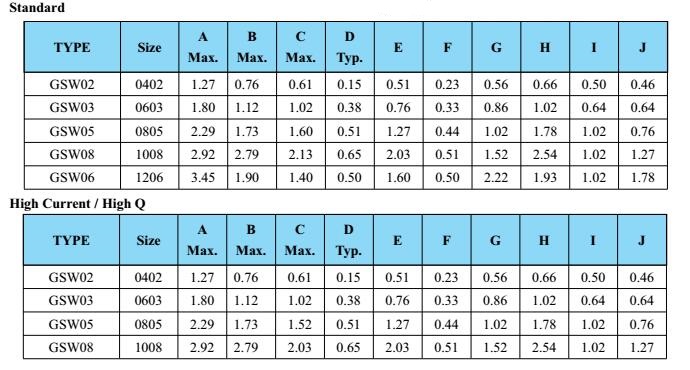 高頻電感GSW Series